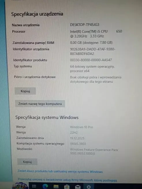 Sprzedam komputer stacjonarny z Windows 10pro dysk SSD 256Gb w bardzo dobrym stanie technicznym